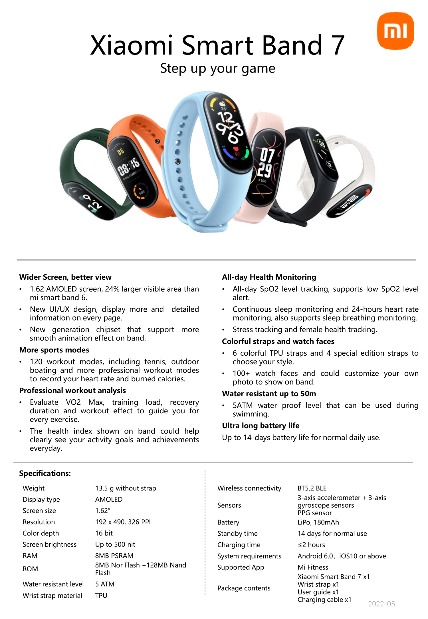 Xiaomi Smart Band 7 هو أفضل صديق جديد للياقة البدنية : أطلق العنان لتجارب رياضية جديدة ومثيرة من خلال 14 وضعًا متخصصًا للتمارين الرياضية.