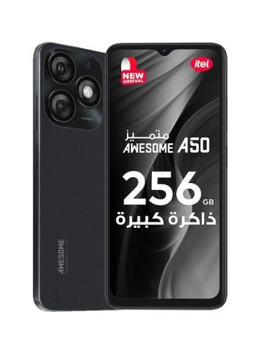 اي تيل موبايل A50 ثنائي شرائح الاتصال بذاكرة رام 4+8 جيجابايت وذاكرة داخلية 256 جيجابايت ويدعم تقنية 4G - اصدار الشرق الاوسط--A50 Dual SIM Misty Black 4+8GB RAM 256GB 4G - Middle East Version