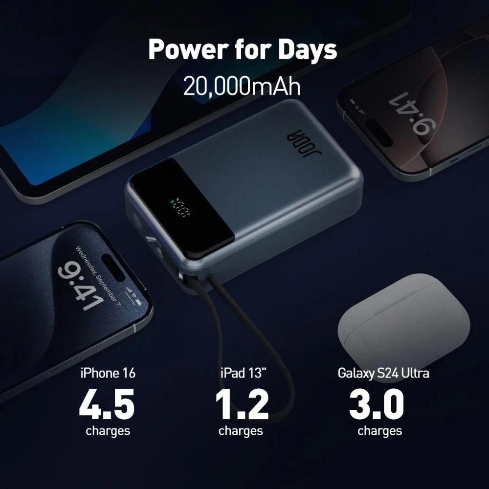 بطارية JODA بسعة 20000 ملي امبير بقوة 33 واط بمنفذ تايب سي ومنفذ يو اس بي مع سلك تايب سي مدمج