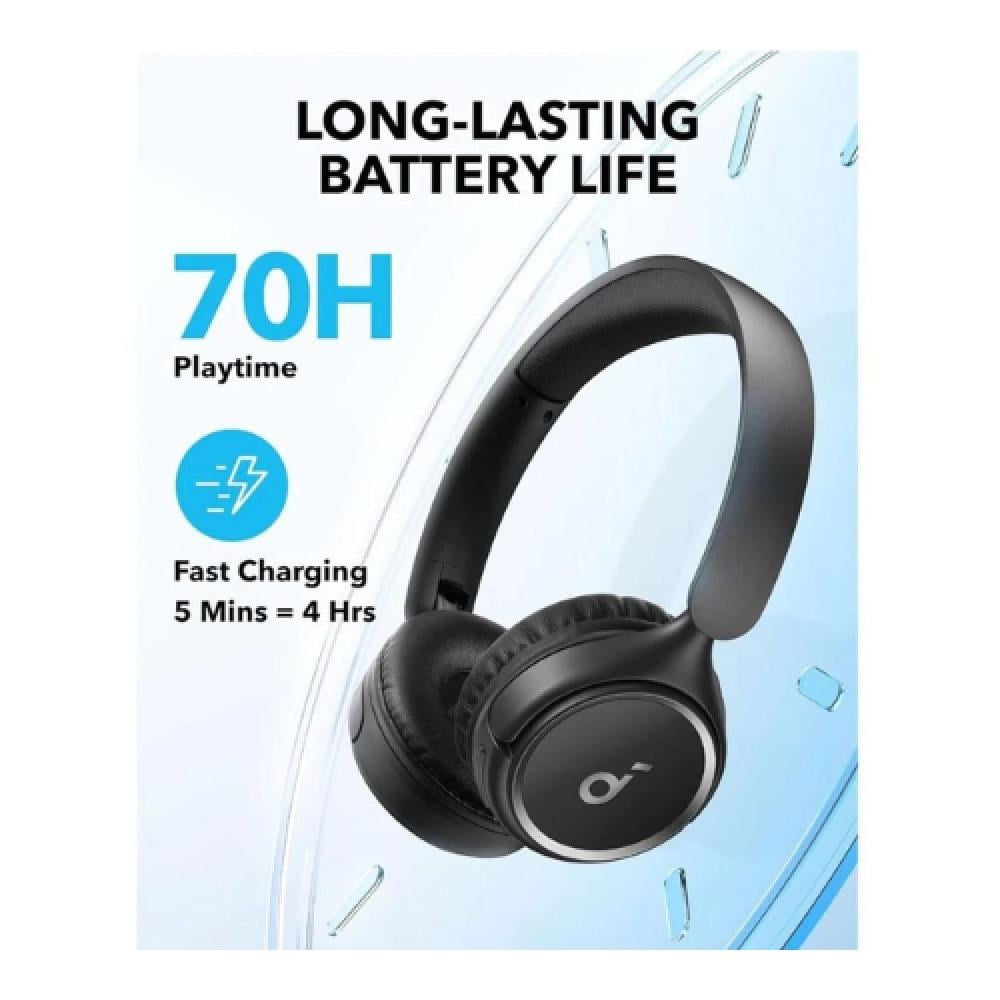 وقت تشغيل طويل الأمد: لا تتوقف أبدًا عن الموسيقى مع عمر بطارية مذهل يصل إلى 70 ساعة بشحنة واحدة. استمتع بتجربة الشحن السريع للغاية مع Soundcore H30i، مما يوفر 4 ساعات من وقت التشغيل بشحن سريع مدته 5 دقائق.