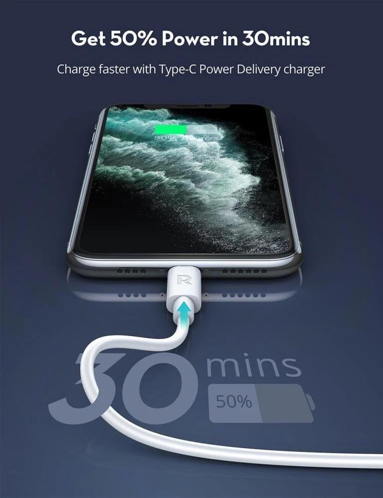 تؤمن لك وصلة لايتنينق من راف باور سرعة شحن هائلة، وكفاءة في المزامنة وتبادل البيانات. يتمتع سلك راف باور لايتنينق بتصميم متين ومدمج. تقوم وصلة لايتنينق يو اس بي من فئة سي USB C To Lightning Cable بمنحك تجربة تزامن منقطعة النظير . يمكنك من توصيل جهاز يضم منفذ يو اس بي من فئة سي USB C بجهاز يضم منفذ لايتنينق Lightning وبالعكس ايضا كما يمكنك شحن جهازك الايفون ، والايباد ، والايبود عبر الماك بوك الخاص بك من خلال . UCB-C منفذ