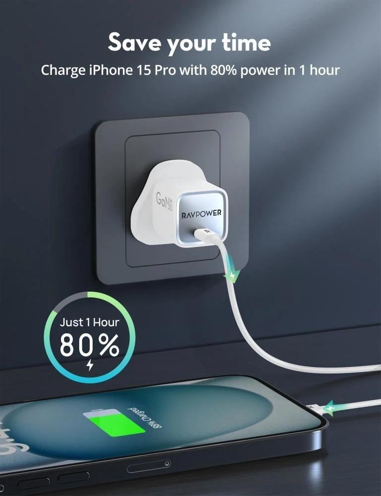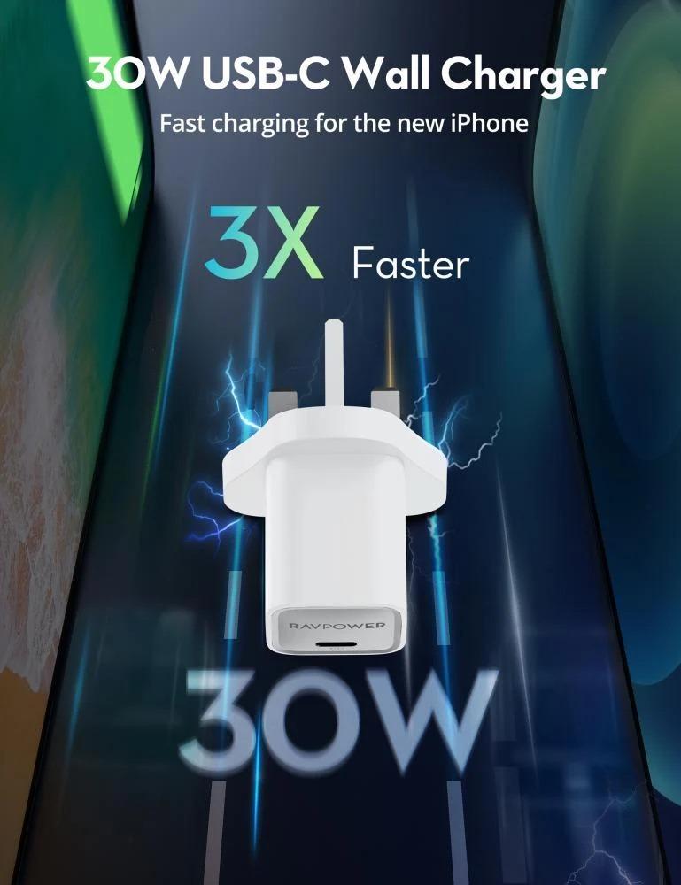 شاحن جداري راف باور بمنفذ تايب سي بقوة 30 واط -