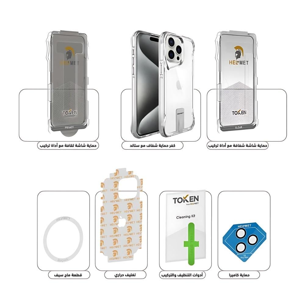 Helmet بكج حماية شامل من TOKEN مع ضمان شاشة وظهر ضد الكسر والإصفرار- ايفون 17