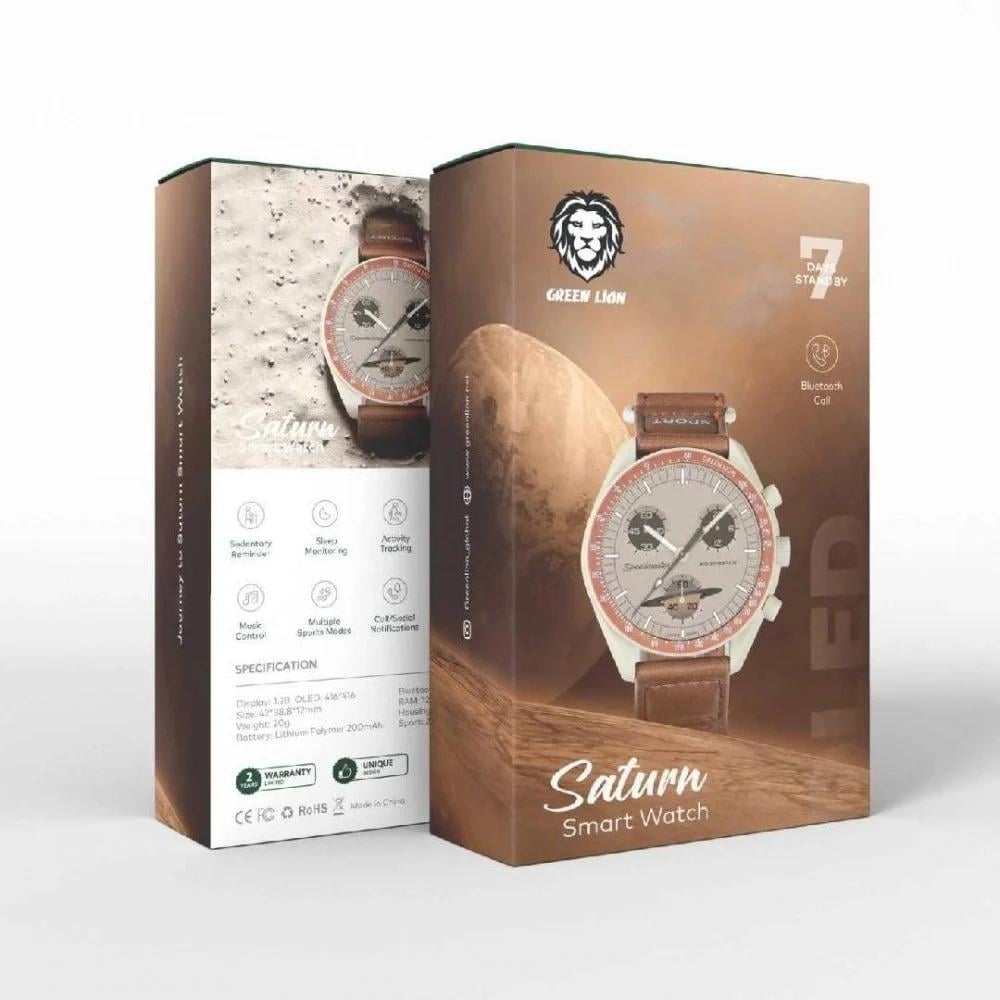إذا كنت تريد أن تبدو مختلفًا مع نمط ساعتك، فإن ساعة Green Lion Saturn الذكية تسعد بتقديم مزيج من الأناقة والوظيفة. وقد اكتسبت هذه الساعات الذكية شعبية بين المستخدمين، لخصائصها البارزة. مجهزة بوظائف قياس معدل ضربات القلب ومستوى الدم مما يجعلك تولي المزيد من الاهتمام لصحة جسمك . بفضل وظيفتها المستقرة، يتم تحفيز المستخدمين على البقاء نشطين. بالإضافة إلى ذلك، فهو يدعم تقنية البلوتوث 5.1 التي تتصل بهاتفك وبالتالي تتمكن من استقبال المكالمات وإشعارات الرسائل. والمثير للدهشة أن بطارية الهاتف الذكي قادرة على دعم ما يصل إلى سبعة أيام من زمن الانتظار.