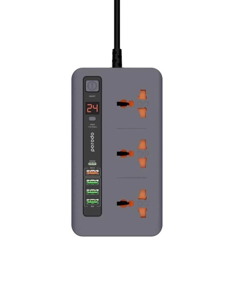 تم إنشاء Porodo Multi-Port Power Hub خصيصًا لتلبية احتياجات الجميع. يعد مركز الطاقة متعدد المنافذ مثاليًا لشحن مجموعة متنوعة من الأدوات، بما في ذلك الهواتف وأجهزة الكمبيوتر والحوافر الذكية والألعاب وغيرها الكثير. بالإضافة إلى ذلك، فهو يتميز بثلاثة مقابس تيار متردد يمكنها تشغيل ثلاثة أجهزة مختلفة في وقت واحد بالطاقة اللازمة. علاوة على ذلك، لضمان الشحن السريع، يتمتع منفذ USB-C واحد بقدرة إخراج طاقة تبلغ 20 واط. عندما تكون البطارية منخفضة، يأتي المنفذ السريع لمساعدتك لأنه يشحن الهواتف الذكية من 0% إلى 60% في 35 دقيقة فقط. مع مركز الطاقة متعدد المنافذ Porodo، استمتع بمساحة عمل مرتبة وهادئة. لم تعد هناك حاجة إلى العديد من أجهزة شحن USB أو أجهزة شحن الحائط، وذلك بفضل منافذ التيار المتردد الثلاثة وخمسة وصلات USB كافية لجميع متطلبات الشحن الخاصة بك. علاوة على ذلك، لتجنب هدر الطاقة، يمكنك الآن بسهولة ضبط مؤقت لكل جهاز ليتم شحنه وفقًا لذلك. أخيرًا، تم تجهيز مركز الطاقة باحتياطات السلامة ضد الجهد الزائد والتيار الزائد لحماية أجهزتك بأفضل طريقة ممكنة.
