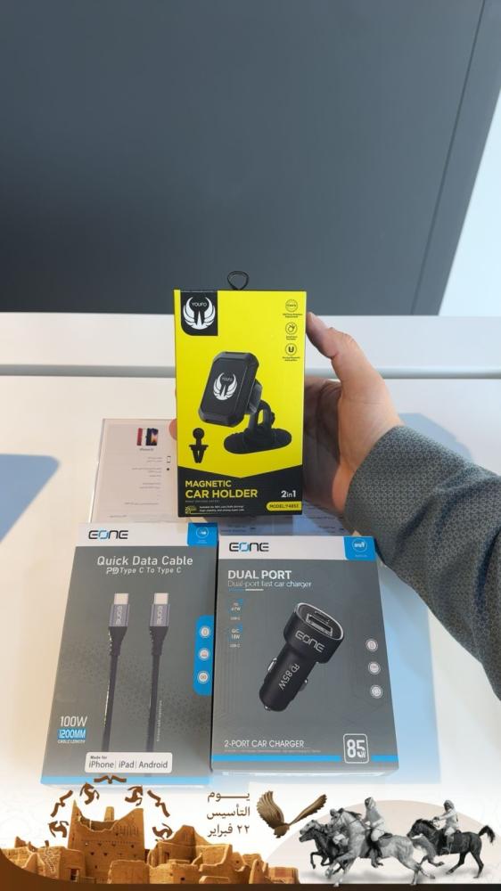 فيش سيارة يقوة 85 واط مدخل pd ومدخل usb +كيبل تايب سي تايب سي + قاعدة مغناطيس تركب على الديكور او المكيف.